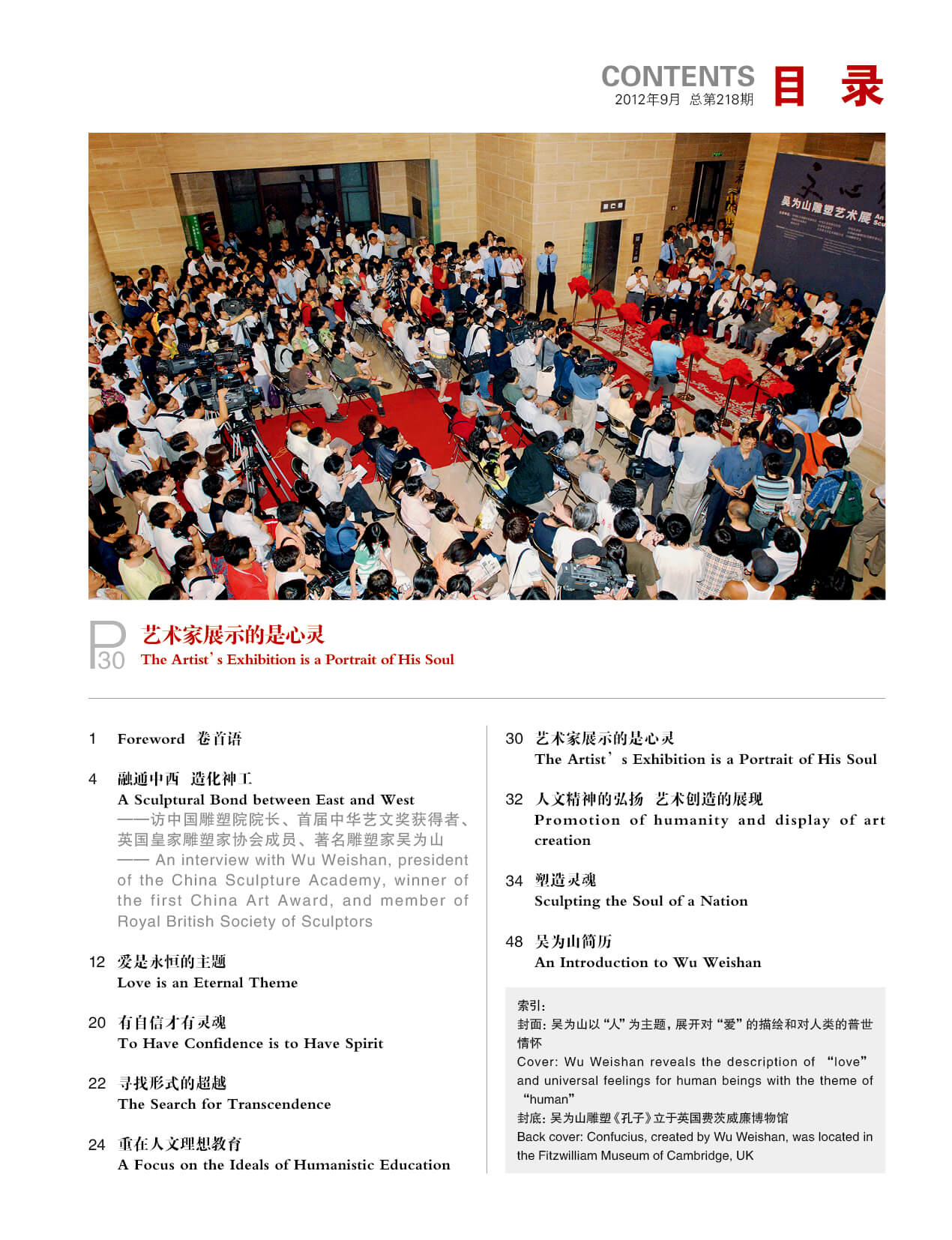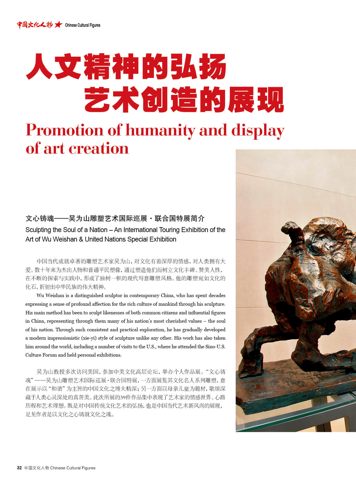——访中国雕塑院院长、首届中华艺文奖获得者、英国皇家雕塑家协会成员、著名雕塑家吴为山