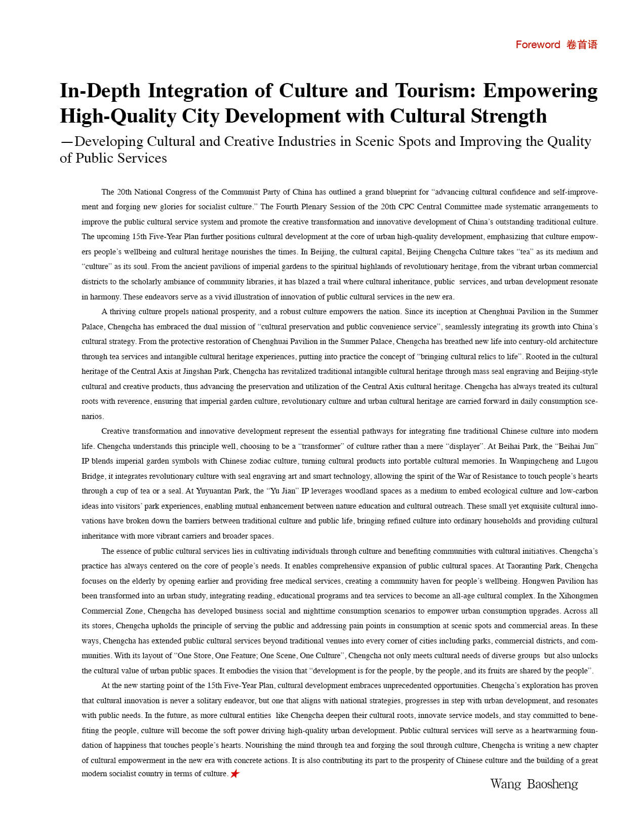 Chinese Cultural Figures In-Depth Integration of Culture and Tourism: Empowering High-Quality City Development with Cultural Strength