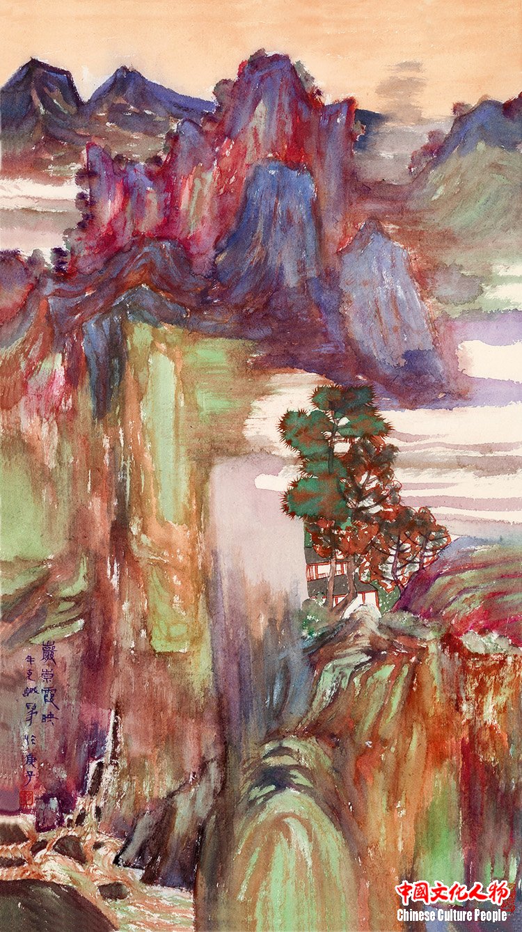 “The Lofty Cliffs Glow in the Rosy Clouds” (98×53cm) by Niu Kecheng in 2020