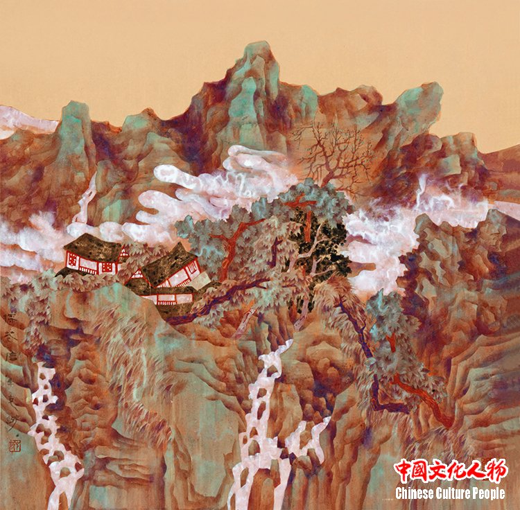 Niu Kecheng deeply explores the traditional color system in color-ink freehand landscape paintings. He connects the “Five Elements” philosophy with the “Five Colors” system and masters hue and color temperature. He also inherits the Northern School painting style of the “Two Lis” (Li Sixun and Li Zhaodao) from the Tang dynasty, as well as the traditions of light crimson landscape paintings and green landscape paintings. Through these, he expands the aesthetic connotation of Oriental art.