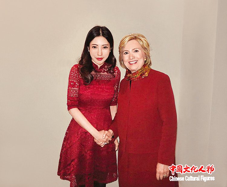 2016年,美国第67任国务卿希拉里收藏米巧铭作品并合影留念