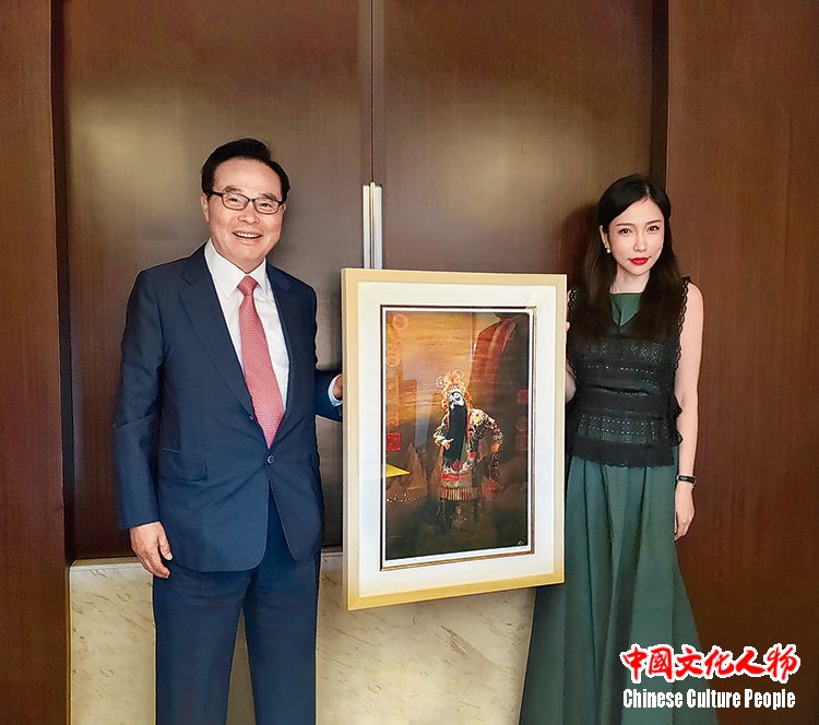 2019年,韩国第13任副总理林昌烈收藏米巧铭作品并合影留念