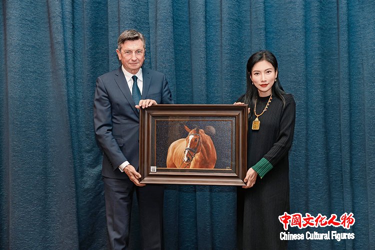 2024年,斯洛文尼亚第四任总统博鲁特·帕霍尔收藏米巧铭作品并合影留念
