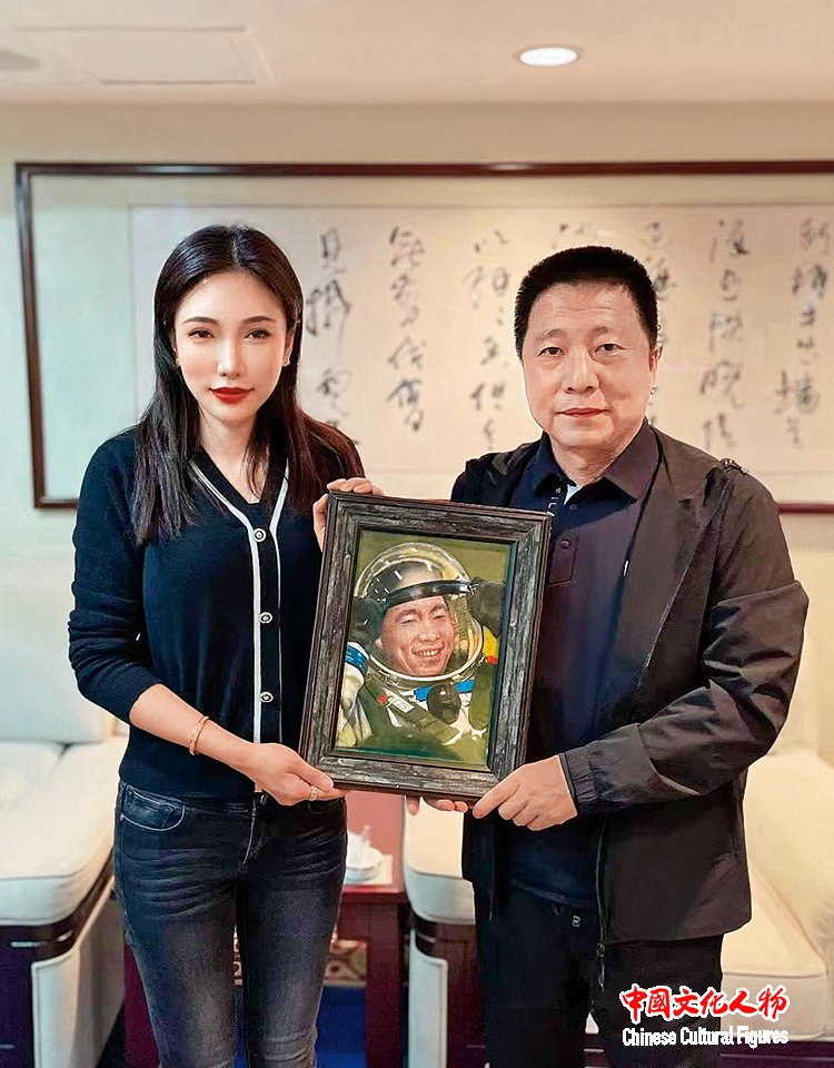 2021年,中国载人航天工程副总设计师、航天英雄杨利伟收藏米巧铭作品并合影留念