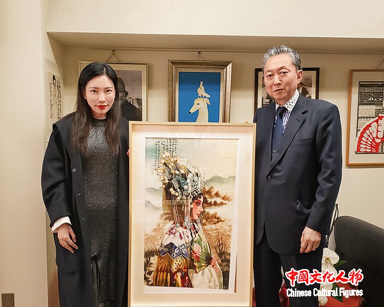 2019年,日本第93任首相鸠山由纪夫收藏米巧铭作品并合影留念