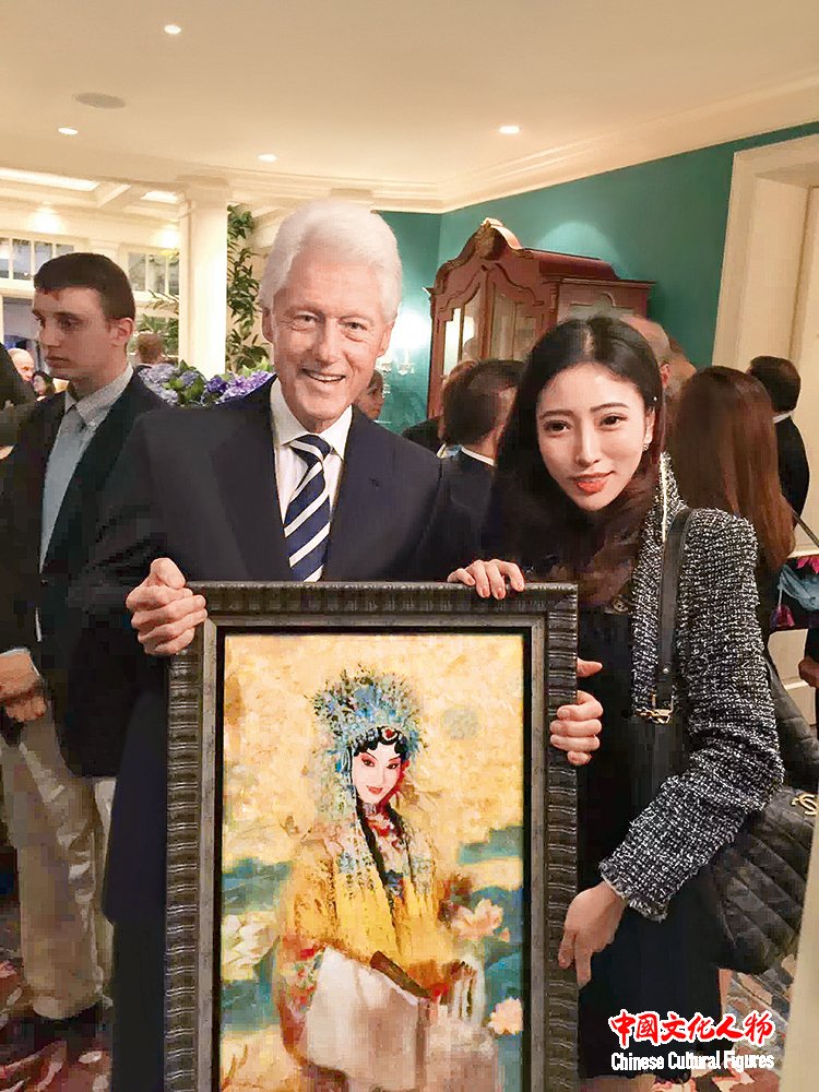2015年,美国第42任总统克林顿接见米巧铭,并收藏其作品《贵妃醉酒之杨玉环》