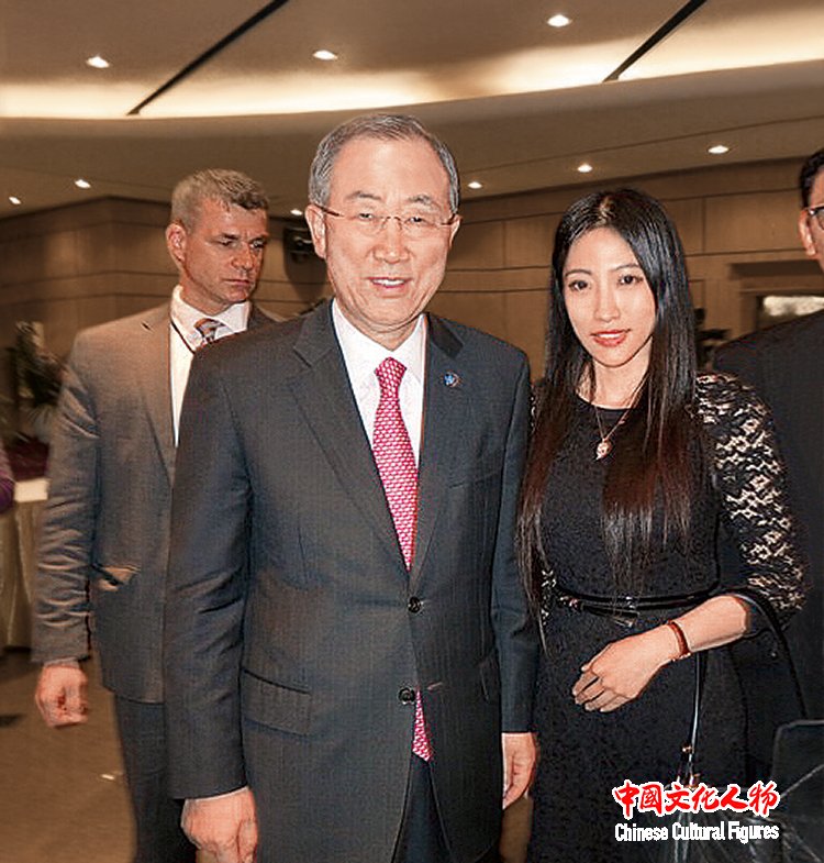 2013年10月,“米巧铭联合国个人油画展”在纽约联合国总部举行。时任联合国秘书长潘基文与米巧铭合影,祝贺画展圆满成功
