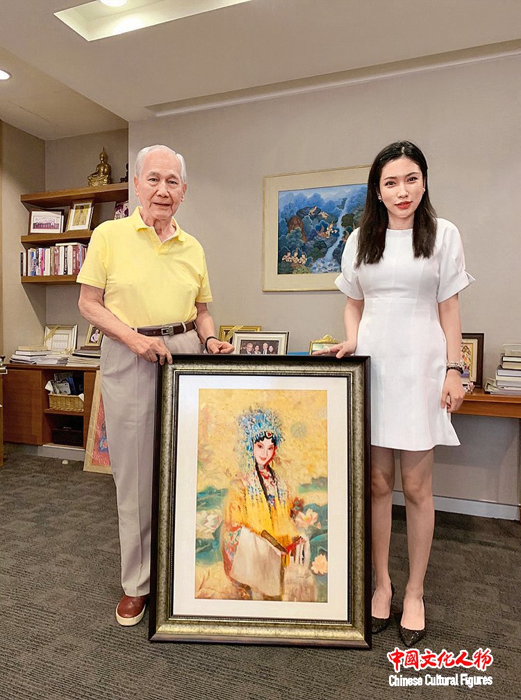 2018年,泰国第18任总理阿南·班雅拉春收藏米巧铭作品并合影留念