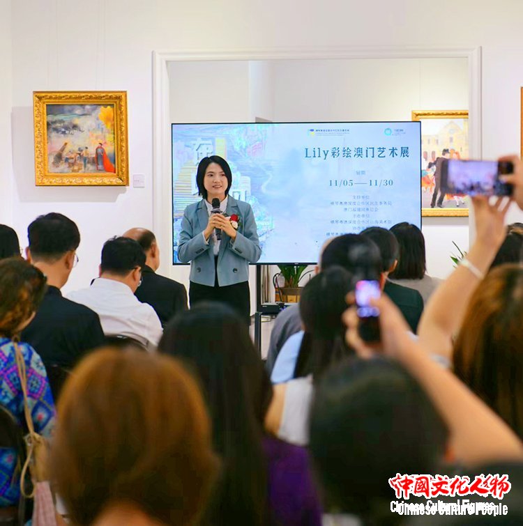 中国文化人物(记者 苏晴)11月8日,由横琴粤澳深度合作区民生事务局、澳门福建同乡总会支持,横琴粤澳深度合作区山海美术馆主办,横琴富华紫檀博物馆、澳门城市大学广东校友会协办,广东清风明月文化集团承办的“在此·见彼——Lily彩绘澳门艺术展”在横琴山海美术馆隆重开幕。