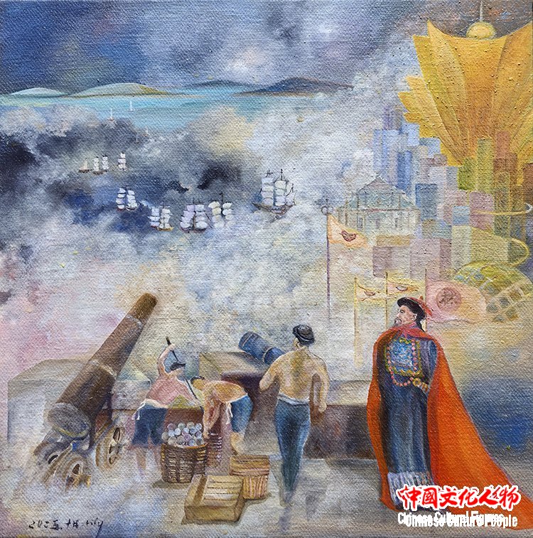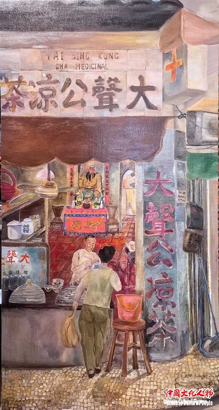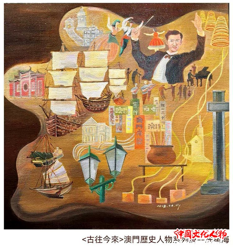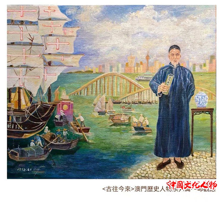 作为一位扎根澳门二十多载的创作者,Lily此次展出的28幅画作,包含油画、丙烯、水彩、墨彩,正是“此”与“彼”的交织产物。“画说澳门凉茶”系列,见生活之道;“澳门烟火”系列,见时间之痕;“古往今来”澳门历史人物系列,是与先贤的对话,借由前辈们的精神火炬,探寻一座城市的历史脉络。