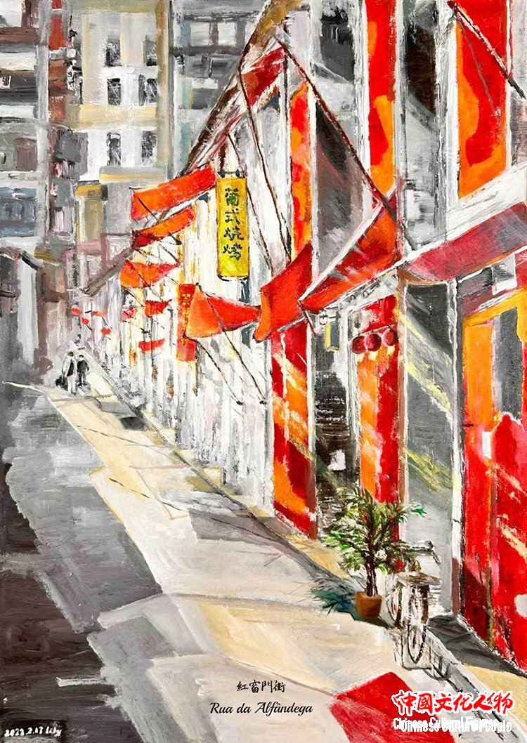 Lily的画笔,从不满足于复刻地标,而是以“新澳门人”的独特视角,敏锐地挖掘着小城里那些被忽略的细节。水彩的通透、油画的沉厚与丙烯的锐度,共同调和出她独特的艺术语言——这既是双重文化身份在她生命画布上的交融,亦是她对澳门这座城市的深情凝视。在此凝神驻足,于方寸之间,见天地,见历史……在此,见彼!